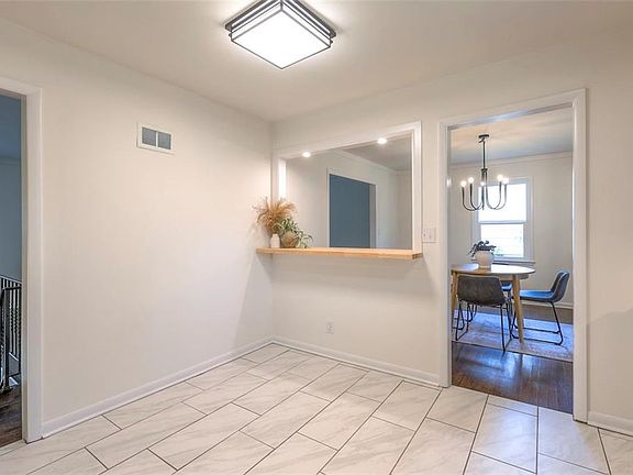 Upstairs, you'll find beautiful hardwood floors and a generous living room that seamlessly flows into the dining area—perfect for everyday living and entertaining guests. The updated kitchen is a chef's delight, showcasing sleek countertops, stainless steel appliances, and ample cabinet space. Whether you're preparing a casual meal or hosting a dinner party, this kitchen combines functionality and style.