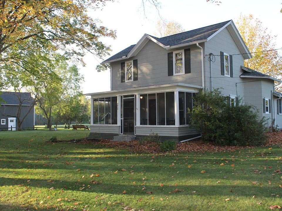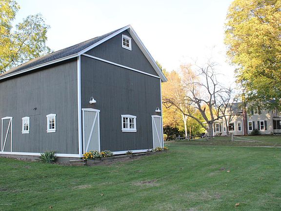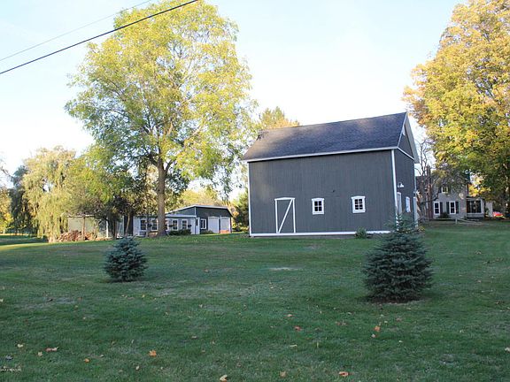 This charming farmhouse sits on over 2 acres and backs up to the golf course! You will love the updated kitchen with rich wood cabinets and Corian counters, wood burning brick fireplace with wood mantel, high coved ceilings, hardwood floors, restored wood trim, beautiful bay window, den that could be a 4th bedroom, large full bath, main floor laundry, screened in porch that draws you in, 3 bedrooms upstairs with room for a bath. Other updates include new furnace and a/c, whole house generator, roofs on all buildings, paint, plumbing, electrical, concrete floors in ext. bldgs. There is a renovated two car garage with attached storage area and wood shop along with a hip roof barn with storage and a loft. Great for a man cave or to host parties. Huge beautiful yard with mature trees overlooking the golf course. Over 320' splittable frontage. Move in and make this your own! This home is less than 5 minutes from 96, making it a great location for commuters to Lansing or Detroit.
