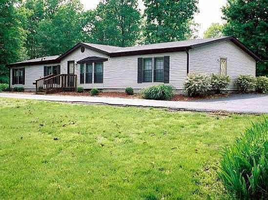 Lots of space in a beautiful setting, under $100,000! Located in wooded hills of southern Morgan Co. This is a 1996 manufactured home that boasts 3 full baths, sunny Kt w/center island, DR, LR, FR & a office/den bonus r m. You'll rarely see a manufactured home this spacious! Brand new heat pump, carpeting.