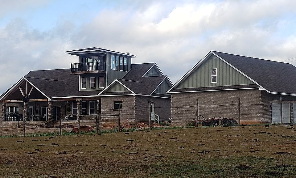 Custom build single family home in quiet country setting with 4700 sq ft.Open floor plan through dining, kitchen, and living areas. Kitchen contains 2 ovens, 2 sinks, and 33 ft of quartz counter space. The butler pantry contains an additional dishwasher and sink, and cabinet space. There are three bedrooms on the main floor and 3 bathrooms. The master suite bathroom has a walk-in shower and a stand-alone soaking tub, and twin vanities. The office area has Mustang Cherry built in cabinets. The floors throughout are oak hardwood and ceramic tile. The second floor is a great space for a playroom or for teens to hang out. There is a half bath on the second floor. The "tree house" on the third gets you above the treetops for a beautiful view of the wildlife with a 300 degree view. There is a step out deck facing the pool.