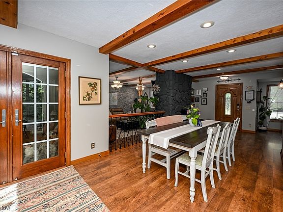 This beautiful, updated 3 bed home is nestled on 1 acre wooded lot & provides the ultimate in privacy & tranquility. As you step inside you see the captivating wood beams, rich moldings & wood laminate floors that add character & warmth. Open-like floorpan allows for easy flow between rooms, perfect for comfortable living & entertaining. Spacious kitchen is chef's delight with SS appliances, granite counters & an abundance of cabinet & counter space for storage & food prep. Faux brick wall brings updated feel to charming sitting area/sunroom off kitchen & opens to deck for that morning cup of coffee. Family room is focal point of the home with a stone wall & a cozy fireplace that enhance rooms character to create a warm & inviting atmosphere. Oversized primary bedroom is luxurious retreat, spacious walk-in closet & ample room for privacy & relaxing, balcony for stargazing and sunrises. Primary bath features tub, walk-in shower & double vanities. 2 add'l nicely sized bedrooms. Partially