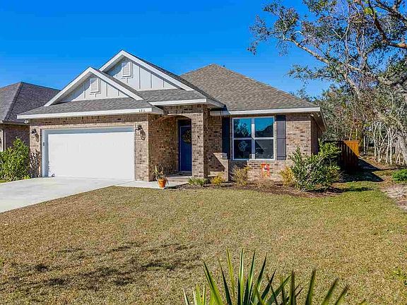 Located off of scenic Gulf Beach Hwy in the gated Sunrise Community. This home offers 3 Bedrooms and 2 Baths with an open floor plan. You'll love the LARGE kitchen with granite countertops, UPGRADED cabinets and island with Maytag Appliances. The Master bath has double vanities, shower, plus a HUGE walk in closet. This home also offers luxury vinyl plank flooring in the main part of house including the bathrooms. You'll love the large backyard with covered patio, firepit and raised deck with views of the neighborhood lake....PERFECT for entertaining! This house wont last long make your appointment today!