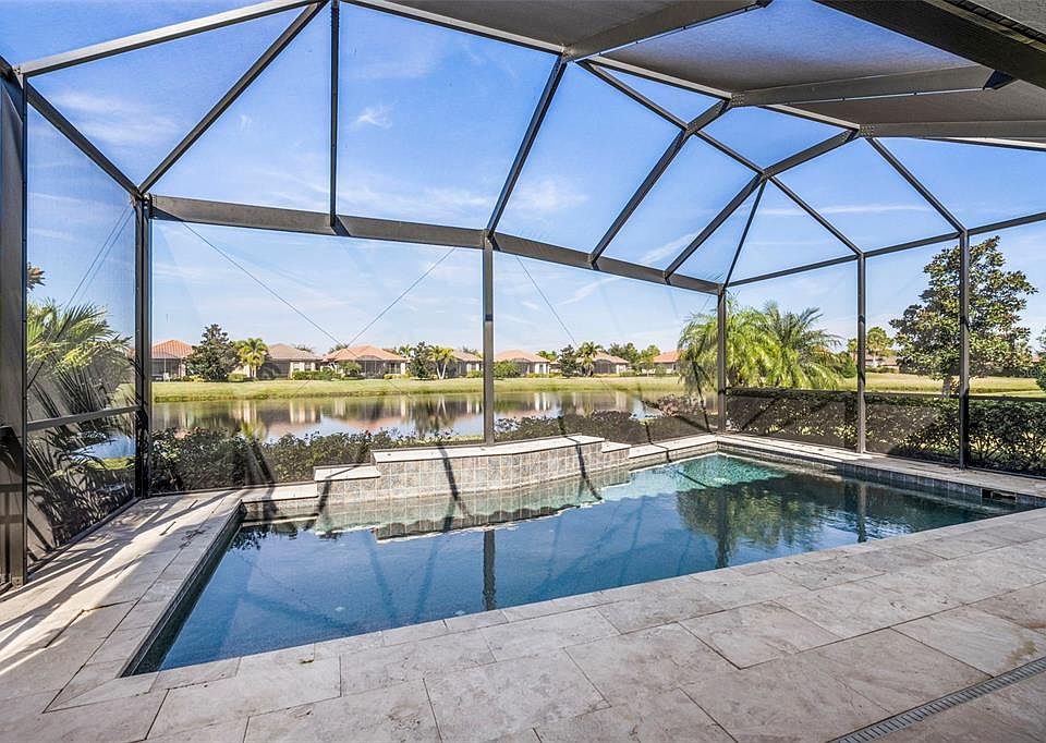 Discover the perfect blend of comfort and elegance in this stunning Arezzo floor plan, ideal for both seasonal escapes or full-time living. This meticulously maintained home features 3 spacious bedrooms, 2 baths, and a versatile den, offering ample space for both relaxation and productivity. The 2021-installed pool, complete with a screen enclosure, boasts cutting-edge features such as heating, air-conditioning, an auto-fill, and auto-drain system, all easily managed through an app that controls the waterfalls and lighting. Enhancing the home's security and efficiency, Hurricane Impact Windows and Doors provide peace of mind, while the extended garage, featuring a 4-foot extension and storage cabinets on two walls, offers ample space for vehicles and hobbies. The property is equipped with a Whole House Water Softener and Filtration System, a Natural Gas Instant Hot Water Heater, and is plumbed for an outdoor kitchen with a natural gas connection, perfect for entertaining and culinary adventures. The fenced-in side yard with synthetic turf provides a low-maintenance outdoor oasis, while the interior showcases exquisite details such as tray ceilings with crown molding, new LVT plank flooring, and fresh paint throughout. The kitchen is a chef's dream with a New Calcutta Gold Quartz countertop featuring an island extension and waterfall design. Additional conveniences include a well-appointed laundry room with upper and lower cabinets and a laundry sink, California closets in all bedrooms, and new blinds/roll shades throughout, including an electric blackout blind in the primary bedroom. This home is also wired with a home speaker system, including outdoor patio speakers, perfect for enjoying music and entertainment both indoors and out. Located in the desirable Esplanade at Artisan Lakes, residents enjoy resort-style amenities such as two luxurious pools, a state-of-the-art fitness center, tennis and pickleball courts, and a full calendar of social events, ensuring an active and vibrant lifestyle. Schedule your private tour today!