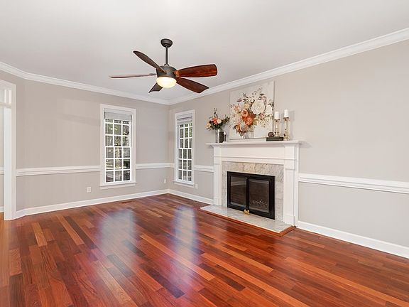 Stunning Santos MAHOGANY FLOORS throughout this CUSTOM built 4 bedrooms + BONUS, 2.5 bath home nestled on a wooded acre lot in the SUNSET LAKE community! Fabulous trim and millwork, curved staircase in foyer, built-ins galore throughout the home. Lots of natural light flowing into the formal dining & living rooms, picture windows & FRENCH DOORS while you entertain friends & family! Enjoy the cozy family room with your wood burning FIREPLACE )can be converted to gas easily). Your Eat-in kitchen is surrounded by windows open to nature’s year round beauty. Retreat to your master suite with vaulted ceilings, skylights, remodeled zero entry tiled shower and large WIC! Bonus room with a back staircase to the kitchen is great for work from home, or other flex space! Enjoy kayaking & canoeing on the private community lake. Less than 3 miles from FUTURE 540 Exchange!