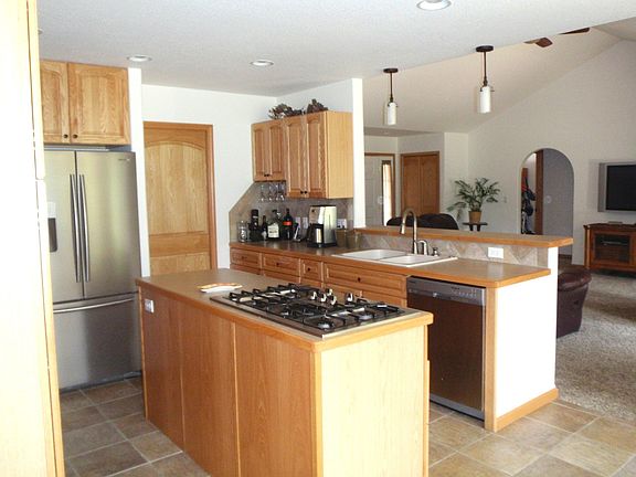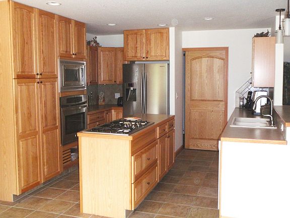 Split open floor plan with ceramic tile in bathrooms, entry, kitchen, dining, and utility areas. Arched doorways with rounded corner bead.....oak trim and arched panel doors throughout. Stone gas log fireplace in living room along with a three panel french door leading to the covered rear deck. Master suite all to yourself on one end of home with walk-in closet, dry sauna, walk-in shower, jacuzzi style tub, and french doors leading to rear deck. Three car attached garage with bonus room above to be used as you choose....exercise room, family room, or fourth bedroom. Home is well insulated with polyurethane foam in the walls, has central air, and a heat pump giving you an option to run furnace on natural gas or electric. Broker owned.