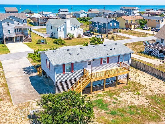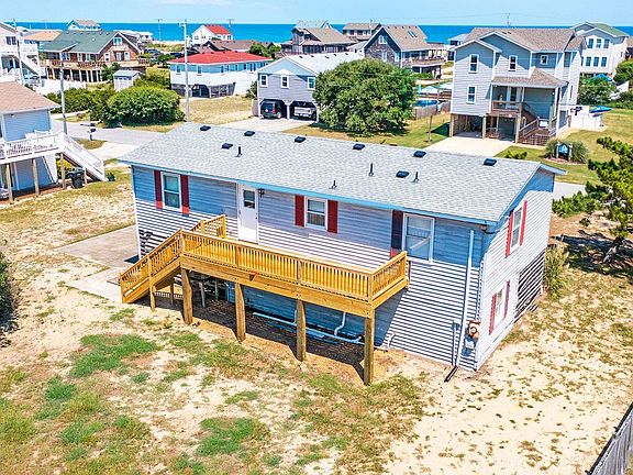 So close to the beach! Within walking distance to 2 beach access. Partial ocean views from the front deck. NEW decks, rails and steps in front and back. Home needs some other work but with a little bit of elbow grease this home can shine. Owner wishes to sell in AS IS condition and it's priced to reflect. 4 bedroom, 2 bath upstairs. Open kitchen/living area. Large lot. Buffer of trees in back make for semi private lot. Lots of potential. Location, location, location!