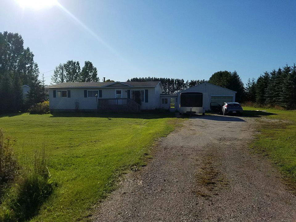 3 bedroom, 1 bath, manufactured ranch with spacious kitchen and dining addition. Full dry basement, large open deck, 4-car garage. 2 plus acres of flower gardens and apple trees, bordered with pine trees.
