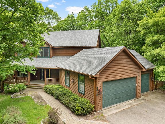 Welcome to this private, woodland retreat just minutes from the city! This home sits atop the hills, nestled amongst mature trees and lush perennials. Walking into the front door, you feel the light-filled floor plan with large open spaces and a functional layout. Custom features include the gorgeous four-season porch, catwalk to the outdoor gazebo, 9' ceilings and screen porch on the lower level. The upper level has four bedrooms offering versatility for an office or flex room. Each of the bedrooms have large closets, big windows and the owner's suite has a bubbly whirlpool and walk-in closet. The lower level features a fantastic recreation room for your favorite movies, games or other fun times. The lower level also has a 5th bedroom and 3/4 bath, perfect for guests. Awaiting your cosmetic updates, make this special property your new private retreat. Welcome home.