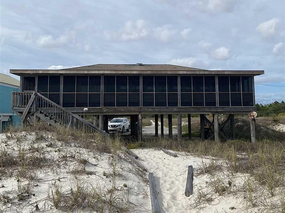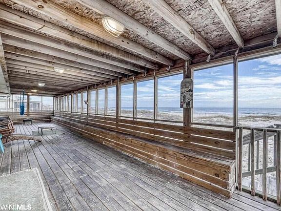 Classic Gulf Shores beach house on a DEEP (325 feet) Fort Morgan lot! Best Gulf front buy currently listed for a single family home. This is your chance to have a TRUE Gulf front single family home at a wonderful price. Three bedrooms, two baths. Plenty of space on the screened porch to watch the waves, relax, and laugh! Compact beach cottage on pilings with tons of possibilities. Open kitchen, spacious living/dining area. Currently in a rental program, so enjoy the income while you make this gem your own. Some items and furnishings may not convey - check for details.