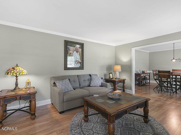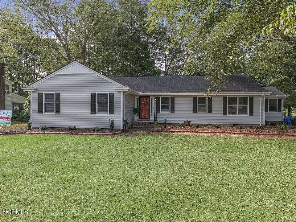 Roomy Ranch all on one level on large lot overlooking 13th Fairway at Wilson Country Club. Freshly painted, new landscape and move in ready, this home features a Formal Living Room and Dining Room. Eat-in Kitchen with stainless gas stove, steps to Screened Porch and Deck overlooking fenced Back Yard. Cozy Den with brick fireplace surrounded by built-ins. Master Suite with Full Bath en suite. 2 Guest Rooms share a Full Bath in Hall.