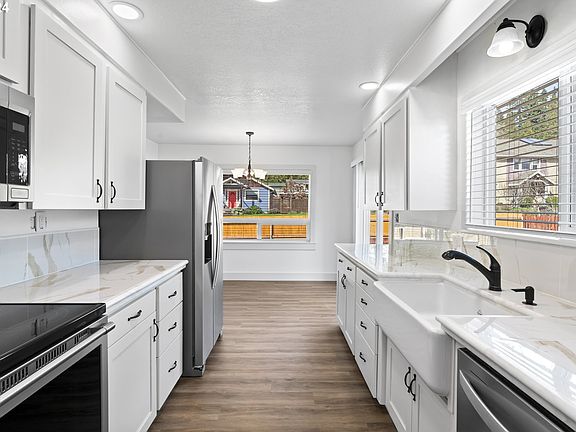 BIG PRICE REDUCTION! Fully remodeled Oakridge corner lot bungalow boasting over 1800+ sqft with 3 bedrooms, 2 bathrooms, formal dining room, utility room, and upstairs office with mountain views! The updates are endless...Brand new roof, siding, LVP flooring, electrical, plumbing, paint, tile shower, fixtures, ductless heat pump, wood burning stove and so much more! Big partially fenced backyard with tool shed and two private patios. Brand new Washer/Dryer Included! PRIME LOCATION for AirBNB! Close to schools, grocery store, and hiking trails. This home won't last!