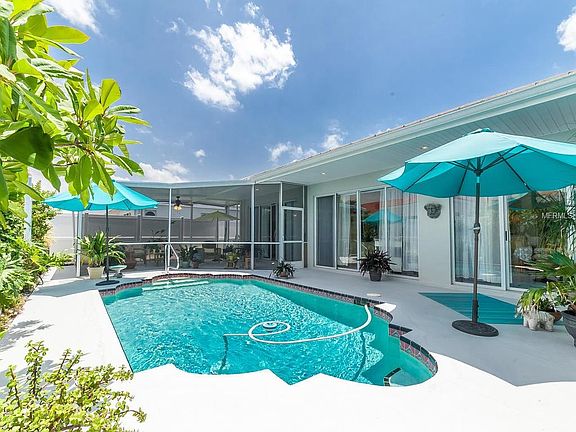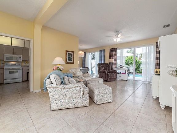 Wow, how amazing! A spacious villa (former developers model home) with a private heated pool, fenced yard, and screened lanai in a maintenance free community priced below $225,000! The recently painted interior is meticulous, roomy and includes a great room plan, tile floors, large kitchen with lots of counter space, new carpet in the bedrooms, and three sets of sliding doors leading out to the pool and screened lanai. Other bonuses include an outdoor shower, a new storm-resistant fiberglass entry door, hurricane rated garage door, and a storm resistant bonded tile system roof installed in 2010. Conveniently located close to shopping, the beaches, and IMG Academy. Come see what makes Palm Court so special.