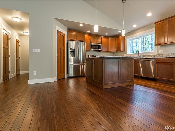 Beautiful new 2,588 sq. ft. 4 bedroom 2-3/4 bath home just completed. Rare quiet secluded 2.7 acre setting w/ beach access! Main floor master bedroom w/ ensuite bathroom including beautiful tiled shower. This large home features an open floor plan w/ vaulted ceilings and fireplace in living room. Kitchen features stainless steel appliances, granite counter tops, bamboo laminate flooring, gorgeous 3-panel interior doors & huge yard. Efficient ductless mini-split heat & A/C for year round comfort.