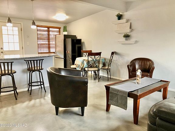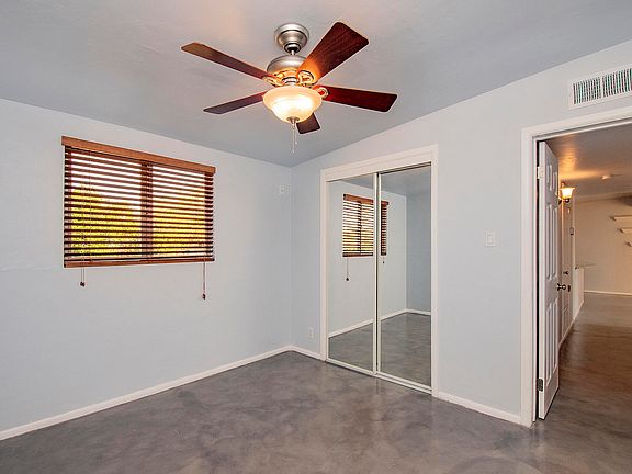 Updated mid-century brick ranch is turn-key ready! Curb appeal continues inside as the greatroom floorplan welcomes you. Start each day in this new granite kitchen while enjoying the large breakfast bar. New integral color concrete floors throughout. New light fixtures & LED lighting. Ceiling fans with light kits. Double pane windows clad with wood blinds. Updated electric wiring. Large laundry room with loads of storage space. All appliances stay including washer and dryer. Covered brick patio and spacious, north-facing backyard offer mountain views. There's even a storage or gardening shed too! Plus: roof recoated, termite treated with one year warranty, carport and additional off-street parking. Come call it home!