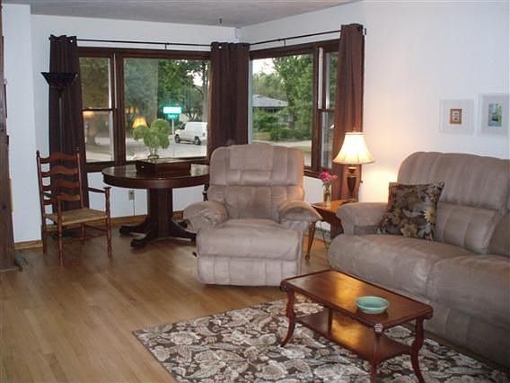 This Elvehjem neighborhood ranch style home sits on a large corner lot with many mature trees. The property features a large master bedroom with walk-in closet as well as a single attached garage and a detached 2 car garage. This home has a spacious layout with a 3-season porch that leads out to the large, level fenced-in back yard. All 3 bedroms are located on the first floor. The basement offers a workshop, fireplace, wet bar, full bath and hobby space. Warranty included!