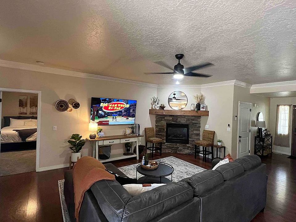6 beds 3 bath 3800 Sq ft. Gorgeous home in a very nice location. Many upgrades in winter of 2022 including New roofing, new granite countertops with marble back splash, new under mount sink and faucet in kitchen & laundry room. New appliances including Range Oven, fridge, microwave & washer/dryer, New modern lighting & fans throughout with new high quality carpet. New top of the line water heater. All within last 7-12 months. Half acre fully enclosed brick fence with large iron gate for vehicle entry. Concrete slab in back ready for garage to be built. Brick Fire pit custom built on a slab of concrete for entertaining. Mature fruit trees. Beautiful lawn in front and back with sprinkler system. Corner lot with mature tree's and lots of privacy. Custom made tall garden boxes in back yard. Currently as of Dec-23 is a successful running Airbnb.
