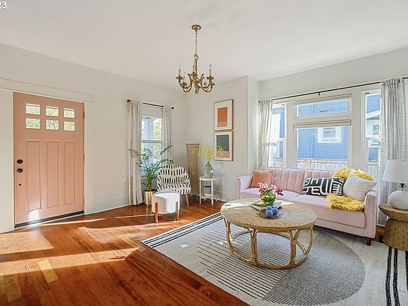 Location, light, livability - this quintessential King bungalow is the whole package. Set up from the street with a perfect people watchin' porch, and blocks from all your favorite Alberta Street restaurants and shops! Original wood floors glow under natural light, and the living room is cozy and cheerful. The separate dining room with beautiful bay windows hits entertaining goals. The recently remodeled kitchen has newer stainless steel appliances, new quartz counters, a new, deep Kohler porcelain sink, and an easy, functional flow. Two comfy bedrooms on the main level, and a spacious, recently updated bathroom. Upstairs, a large bonus room offers flexibility - work-from-home office space, play/family room, guest bedroom, or utilize all that natural light for an artist studio. A fully fenced backyard provides the privacy you want from city living, with a large (and cute!) covered patio for all seasons enjoyment, raised garden beds for your fall veggies, and plenty of space for play. Central Air is a welcome perk. An A+ bike score of 100 finds you in the hub of one of Portland's most beloved neighborhoods - we love those cool arty vibes mixed with modern conveniences. A truly charismatic home in a highly coveted community! [Home Energy Score = 2. HES Report at https://rpt.greenbuildingregistry.com/hes/OR10222995]