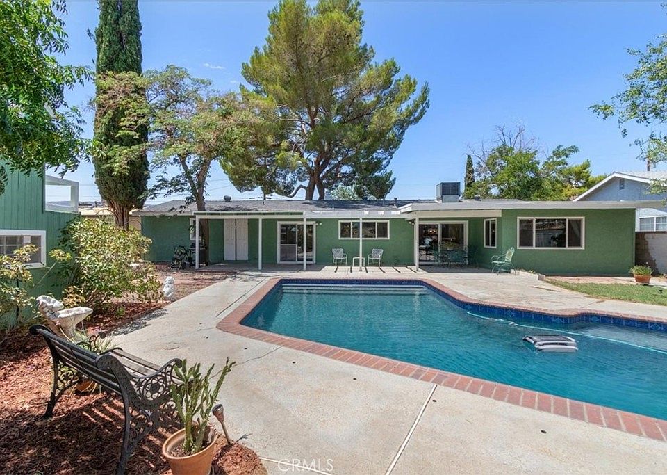 Welcome to this beautifully updated single story 3 bedroom 2 bath home featuring a large pool in the heart of the highly desirable Quartz Hill community. Located in one of the best school districts in the AV. Situated on a generous third of an acre lot. This1,980 sqft home offers a perfect mix of comfort, style, and functionality, Freshly painted inside and out. Brand new windows throughout the entire property. The gorgeous kitchen is a standout with rich cherry cabinets, granite counter tops, plus granite backsplash and windowsill that over looks the pool. Kitchen has recessed lighting, bamboo hard wood floors run through the living room, dining room, hallway, and large bedroom. The living room also boasts a cozy wood- burning fireplace, while the family room stands out with a custom fabric accent wall and more recessed lighting. The full bath has a relaxing jacuzzi tub. Four rooms offer views of the pool and the open space backyard. Recently painted playhouse in backyard as well as two generous sheds that are each 10 x12 and one with loft. Pressed concrete driveway and six fool pool fence. This is a very well take care of property with pride of ownership of over 20 years throughout.