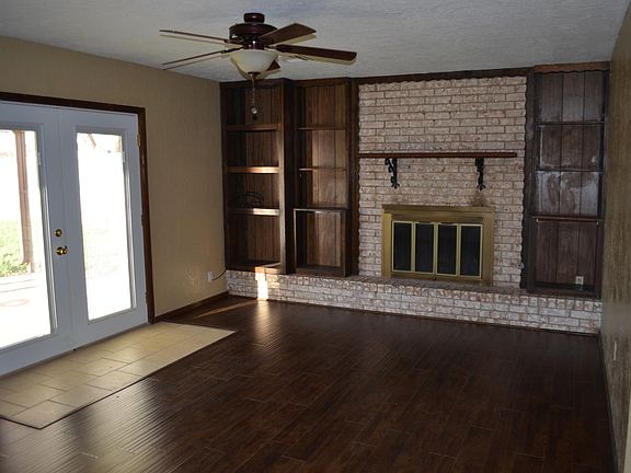 All brick 3 bedroom, 2 baths, 2 car garage 1400 sf home in a well-established neighborhood. Wood flooring and tile located throughout the house with bedrooms carpeted. All rooms have ceiling fans and window blinds. Living area has French patio doors. Large wood-fenced backyard with covered patio. Garage has auto door opener. One block from Park Lane elementary school and J Henderson park. Monthly rent is $850 + deposit. Available 1 July.