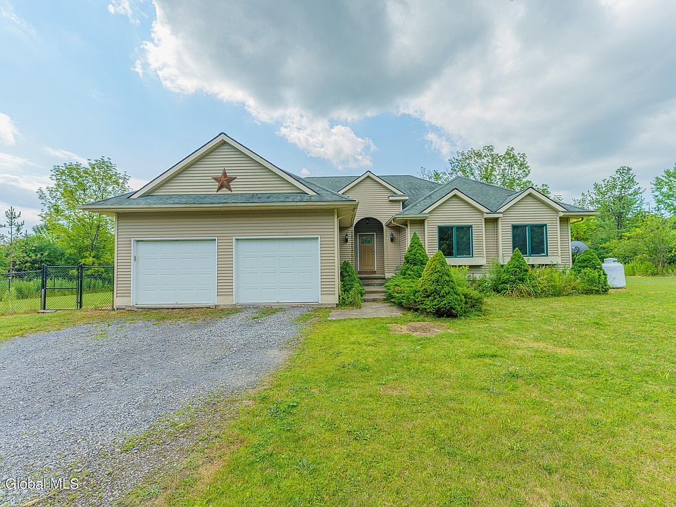 3BR/2BA Custom Ranch home on 3.51 private acres, featuring over 1700 sq/ft of one floor living at its finest with tray ceilings, hardwood floors, open floor plan boasting natural light, a great room with a vaulted ceiling and gas fireplace, large kitchen island, large primary suite with walk-in closet, jacuzzi tub, 4ft separate shower and 1st floor laundry. All doors are 3ft wide for accessibility. Additional living space possible in the full basement with oversized windows. 672sq/ft two car attached garage, large fenced in backyard completes the exterior of this custom home.
