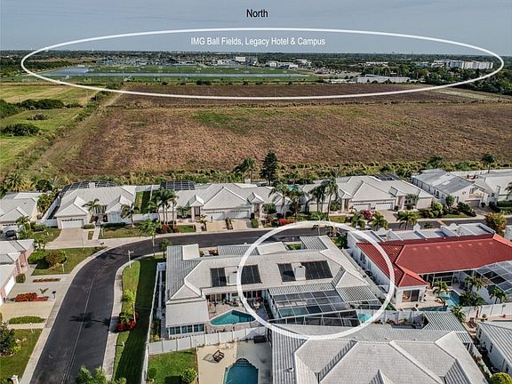 Welcome to Palm Court, a quiet, private, boutique community within a mile of IMG Academy, IMG Golf & Country Club & United Tennis. Short drive to Anna Maria Island, sunsets, boating, fishing & so much more. This fantastic, maintenance-free villa features a split bedroom layout, vaulted ceilings, butler's pantry, wood-burning fireplace, and much more! Your own private screened & heated swimming pool; extremely hard to find a condominium with this feature. Private fenced and landscaped yard plus two oversized covered patios and a perfect side yard for your dog. The 3rd bedroom with built-in shelves and closets could also be used as a den/office/fitness. This home offers large kitchen with multiple sinks, center island, built-in desk, custom wet bar, and counter seating. Master bedroom retreat has large private bath with dual sinks, shower and separate tub plus his/hers closets and sliding glass doors to 2nd covered patio & pool. Light and bright with sliding glass doors to lanai from great room and dining room. The location is ideal & the home is move-in ready. Tile roof was replaced in 2012.