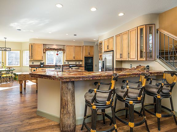 Beautiful European designed home in North Boulder adjacent to open space and trails with outstanding views. Open floor plan with beautiful hickory floors throughout the main level, large eat-in kitchen, stone counters, breakfast bar, perfect for entertaining. Four bedrooms up, updated master bedroom suite with dual closets, west facing balcony. Custom finished basement with media room, workout area, wet bar and bedroom. Large south facing deck, a great place for outdoor gatherings.