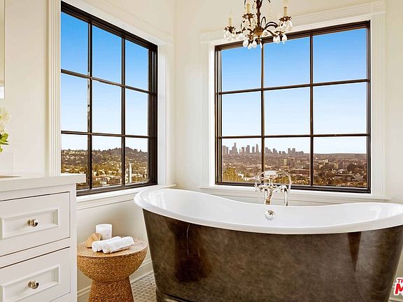 Stunningly renovated Hollywood Regency with explosive, head-on views from Downtown LA to the Westside city lights and all the way to the ocean. Perched on an expansive nearly 18,000 SF lot, this sophisticated 5BD/4BA residence seamlessly blends classic glamour with modern livability.Recently renovated throughout, the home thoughtfully restores its original architectural charm while elevating every space with refined transitional design upgrades. Refurbished period steel windows and newly opened trussed-beam vaulted ceilings amplify scale and volume, flooding the interiors with natural light and creating an airy, elegant ambiance.The reimagined and newly expanded primary suite offers a true retreat, featuring generous proportions, elevated finishes, and serene, top-of-the-world vistas.Outdoors, the property transforms into a private resort sanctuary. A brand-new, cantilevered infinity-like pool anchors the grounds, complemented by multiple expansive patios, sun-drenched terraces, and pergola-covered lounging and dining decksall designed for seamless indoor/outdoor living and effortless entertaining in the quiet hills.A one-of-a-kind, fully permitted engineered sports court delivers exceptional versatility, accommodating basketball, pickleball, soccer, hockey, or virtually any recreational pursuit you envision. Truly extraordinary, the property offers an expansive, usable flat yardnearly unheard ofwhile still commanding sweeping, dramatic views.Located just minutes from the iconic boutiques, cafs, and dining destinations of Los Feliz's Vermont and Hillhurst corridors, yet tucked away with exceptional privacy and tranquility, this home represents elevated hillside living at its finest.