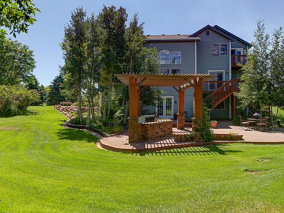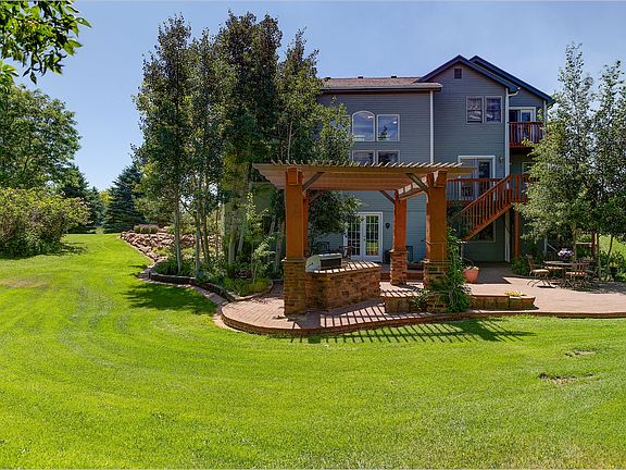 Close in Acreage Estate with Peace, Privacy & Serenity just minutes to town! Entertaining is a breeze on the spacious patio, with built in BBQ area overlooking the land, Mountain Views, water feature & pond. The recently Updated Kitchen is a Cooks Dream, no expense spared with a Grand kitchen island, Granite counters, impressive pantry & high end SS Appliances. Highlights include a Finished Walkout Basement with surround sound & wet bar, Utilitarian Mud Room with sink, Bonus Upstairs Loft for office/den/playroom & So Much More. Relax on the covered screened in front porch, or cozy up to any of the 4 Fireplaces. A true master suite is a personal retreat with a private deck to view the sunsets. Enjoy the Colorado Lifestyle!