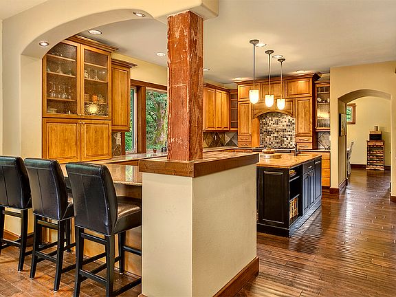 This expertly designed and crafted masterpiece is the perfect blend of Luxury, Lodge & Nature. The spectacular views vary from snow covered Cascade Mtn peaks to fuchsia and lavender colored sunsets and is absolutely breathtaking. The majority of this home's 4.81 acres is native and avails itself to hiking, bird watching or just enjoying nature. The interior of this amazing home features an abundant fusion of wood & stone including repurposed timber beams from the original Eddie Bauer store.