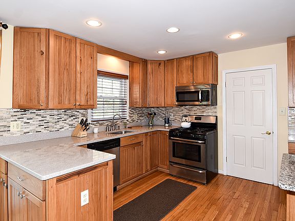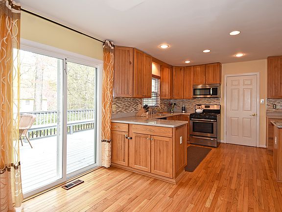 Square footage incorrect in tax records. This home is HUGE. Three finished levels. Huge updated kitchen with SS appliances, Corian counters, and large Granite island. Hardwood floors throughout. Gorgeous glass enclosed sunroom off family room overlooks parklike fenced rear yard. Full length multi-tiered deck for entertaining. Koi pond... Kitchen opens to family room featuring a stunning stacked stone fireplace and built in glass shelving.. First floor library, formal living room with custom drapes. Full finished walk out basement w/rec room w/ wet bar, 5th bedroom and full bath. Large workroom, craft/darkroom. Side entry garage, extra parking pad for overflow parking, or RV. Large master bedroom with sitting room. Extra storage space in master bedroom. NO HOA. Brick walkway and front porch. Installed gutter system to take water away from foundation. Beautiful family home...close to everything.