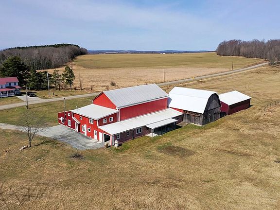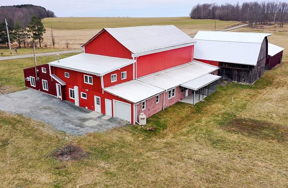 BEAUTIFUL BARNDOMINIUM SITUATED ON 37.94 ACRES!!! You won't find something like this again! One of the many barns has been renovated into living space over 2,000 sq. ft.. Featuring 2 bedrooms, 2.5 baths, office room, living room, eat in kitchen, and a large pantry. Attached 1 car garage, workshop, storage room w/ sink and patio, open metal barn, and a 5-stall animal barn. All barns have running water. This property is so diversified!!! Use as your year round home, rent as a short term rental, event center with a vacation home to enjoy the Finger Lakes Region, or maybe a small farm or hunting get away. The choice is yours!! Also offers excellent hunting and wild life. There is a 5 stall horse barn and a run-in. Currently being operated as an Air Bnb and producing revenue!