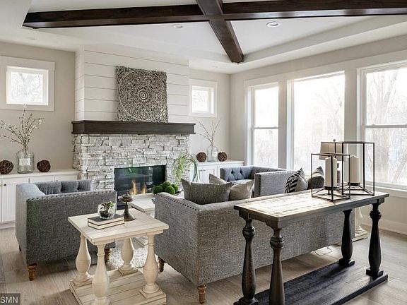 X marks the spot! Common features from this builder take a new twist at 4818 Ridge Road - wide plank oak hardwoods, textured tile backsplash, a mix of shiplap & stone on fireplace, & instead of the traditional grid, coffered beams in great room create angles that center everything into the heart of the home. Open main level, granite, designer lighting & unique accents. Laundry & 4 Beds up. Walkout LL w/wet bar, 5th bed, & bonus room! Mtka Schools & private setting yet convenient to Hwy 7 & 101!