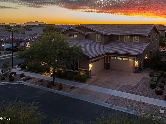 Prepare to be AWED! STUNNING sanctuary in the COVETED community of Eastmark! No detail has been left untouched in this generously appointed, massive home! This open floor plan is an entertainers DREAM for both indoor/outdoor living! You will love the exceptional taste and personalized touches throughout. Gourmet kitchen fit for a chef with large island, gas stove. Warm and inviting family room perfect for hosting with a 4 door slider leading outside. Owners suite features a sitting area perfect for a nursery or gym, huge closet with built ins a bathroom to suit the most exquisite of tastes. Space galore with 6 bedrooms, all with walk in closets and 5 1/2 baths including One private full bedroom and Bath downstairs in addition 2 offices and a Spacious mudroom. Massive loft with an outdoor balcony. The backyard boasts a heated pool with slide and grotto, a 10 person spa, putting green, outdoor kitchen and large covered patio which all bide for a year round outdoor oasis. On one of the largest lots in the neighborhood, on the corner with a large park outside the front door! 4 car garage. Eastmark features parks, sport courts, community pools, entertainment and a sense of community that you can't describe! Close to freeways, golf courses, dining and a plenitude of new development.