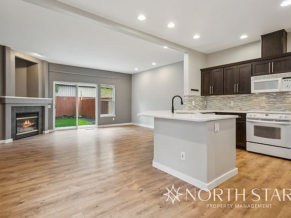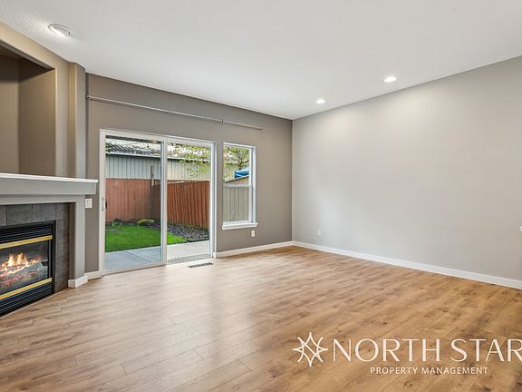 Welcome to this beautifully maintained 3-bedroom, 2.5-bathroom townhome nestled at the end of a quiet cul-de-sac. Step into an inviting open floor plan featuring a cozy gas fireplace, seamlessly flowing into the kitchen complete with stunning quartz countertops and a spacious islandperfect for casual seating and meal prep. Durable high-end laminate flooring throughout the main level.