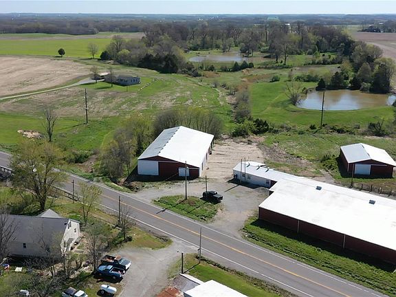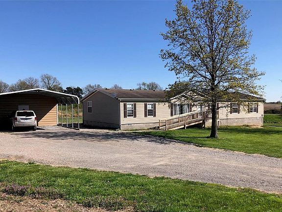 There is a lot to this property!  4B/2B manufactured home on 22 acres with three large sheds for a variety of storage.   This home is very spacious at 2,432 sq ft with a large living room and also a large family room with a woodburning fireplace.  New front porch and back deck.  The large buildings have some concrete paving around them and would be great for equipment storage and/or a business.  Approximately 9 acres cropped with acreage available for pasture, etc.  Three to 4 acres wooded.  City water and also a well on property.  Private easement around north barn to back ponds. No ponds are included.