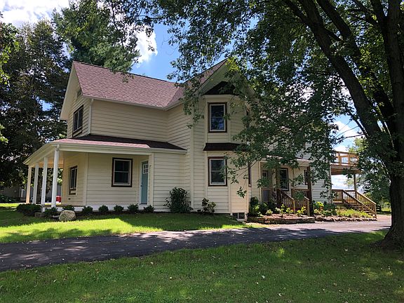 GORGEOUS 1895 FARMHOUSE.....Gutted down to the studs, 5 bedroom, 4 bath sitting on a huge 3/4 acre lot that backs up to a farm field. 2 STORY - 2 car detached garage, one 10 ft. garage door, one 8 foot. The first floor is an open concept with a huge kitchen 17 x 17 ft. with a walk in pantry. Large living room, dining room, and family room. 5th bedroom with an en-suite on 1st floor ... PERFECT FOR AN IN-LAW SITUATION!!!! Half bathroom powder room on lst floor. Second floor has 4 large bedrooms ALL WITH VAULTED CEILINGS. 2 full baths upstairs. Master bedroom is huge with en-suite, walk in shower, and steam room. The master bedroom also has two sets of french doors, that go out to a 14'x 34' wrap around deck for a gorgeous view of the sunsets. Two closets in the master bedroom. There is also a laundry room on the 2nd foor. Large lower deck on the 1st floor. ALL NEW, ELECTRIC, PLUMBING, TWO FURNACES, TWO AIR CONDITIONERS, INSULATION, ALL NEW ANDERSON WINDOWS. Cedar siding and wrap around deck for front porch to give it that cozy country living charm. The roof is a complete tear off and NEW! This home is drywalled, and primed, I have the original antique trim that came with the home. Staircase is 4 ft. wide. THREE 100 year old plus OAK TREES in front yard. MUST SEE TO APPRECIATE!! Neil 847-651-3518 (Owner)