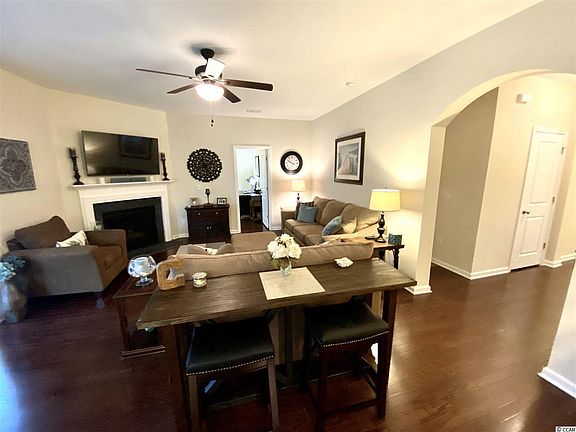 Beautiful house in the desirable Clear Pond At Myrtle Beach National. Built in 2015, this "Traditional" style 6 bedroom home shows as if it's brand new and is full of upgrades! The front of this home offers a 24' long covered front porch, shake siding, stone pillars, and a 2 car-garage outlined with craftsman style stone. The first floor offers hardwood flooring throughout the Foyer, Formal Dining Room, Kitchen, Breakfast Nook, Family Room, and the 6th Bedroom (First Floor). The Kitchen comes equipped Granite Countertops, Upgraded 36" Cabinets with added hardware (Handles) and Crown Molding, a Breakfast Bar, a Walk in Pantry, large Breakfast Nook, Surround Sound Speakers with Easy-To-Use wall plug-in, 4 Can Lights, and upgraded Stainless Steel Appliances: Range with Double Oven, Refrigerator, Dishwasher, Garbage Disposal, and Microwave. The Family Room offers a ceiling fan, a Natural Gas Fireplace with an upgraded mantle, and a 11'4"x9'7" Carolina Room, which sits right off the family room. This added room offers tile flooring, a ceiling fan, 6 Large windows, and a Glass Door. The combination of the windows and the glass door leave the most natural light a room can allow, making it a perfect room to relax, read, or an extra entertainment area. Five of the 6 Bedrooms are located upstairs and I will be using the "Richardson" Floorplan as a tool to reference each room. For example, Bedroom 4 (Labeled "Bedroom 4" on the floorplan located in Associated Documents attached to this listing) offers a ceiling fan, a large closet with French doors, and an extra bump out/sitting area, making this room more spacious than most of the others. Bedroom 3 and Bedroom 2 offer a ceiling fan and a spacious Walk In Closet. Bedroom 5, which can also be considered a Bonus Room, is another larger bedroom and like Bedroom 4, it offers an extra sitting area. The Master Bedroom is just about 20'x15' and offers a ceiling fan and tray ceilings. The Master Bath has a raised vanity with granite countertops, two sinks, separate tub and shower (Shower has glass walls and glass door), tile flooring, and a large walk in closet. Laundry Room is located upstairs for easy convenience and offers tile flooring and above shelving for easy storage. The Garage has coated/painted flooring, a garage door opener, 2 additional LED lights, and a Tankless Hot Water Heater. This house offers a concrete back patio and a large backyard that backs up to a lake, perfect setting for any type of home owner. Clear Pond is located within Carolina Forest, which is in close proximity to all local schools and attractions, such as Carolina Forest High School, Grocery Stores and Gas Stations, Tanger Outlets, Access to Hwy. 31 (Access North to Little River or South to Surfside and Murrells Inlet), Coastal Grande Mall, Myrtle Beach Airport, the Beach, and so much more!