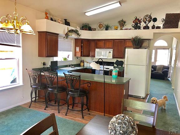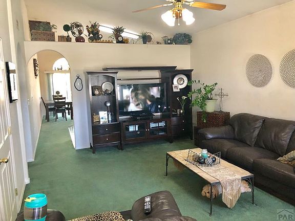Step inside this 12yr old home and you'll find a very large and spacious living room with vaulted ceilings and big bright windows. Open kitchen and dining room area with large peninsula seating for great friend and family meals and conversations. The flow of the house it perfect for a small family, empty-nesters, professionals, or anyone needing excellent room space for activities or storage. Pride of ownership throughout! An easy, incredibly well maintained Japanese style back yard with soothing fountain just off the north facing (Pikes Peak views) covered back patio. Completely fenced back yard with block and wood fencing. Tile roof, NO STEPS from the street to the back yard, finished out garage w/attic storage, Pella doors on main and master bedroom exterior entrance, and high efficiency HVAC, which has been recently serviced & updated, are just a few of the quality points of the home. Planned community with a very well maintained park within walking distance (1 city block). Don't miss this opportunity to get into one of Pueblo's best kept secrets!