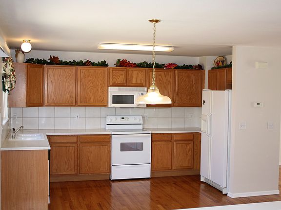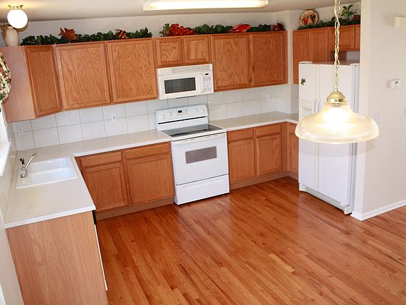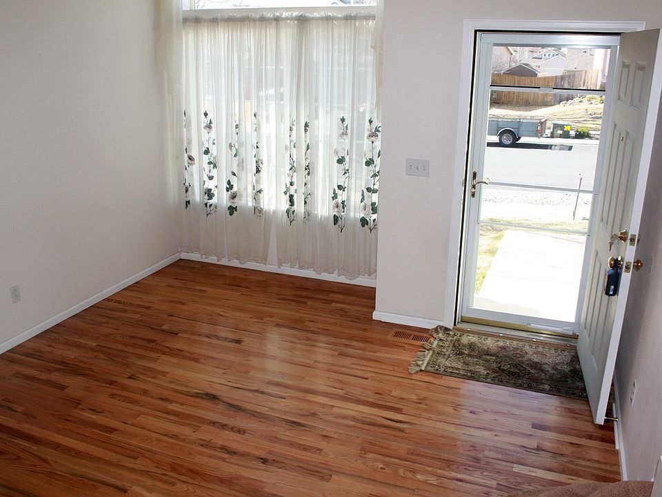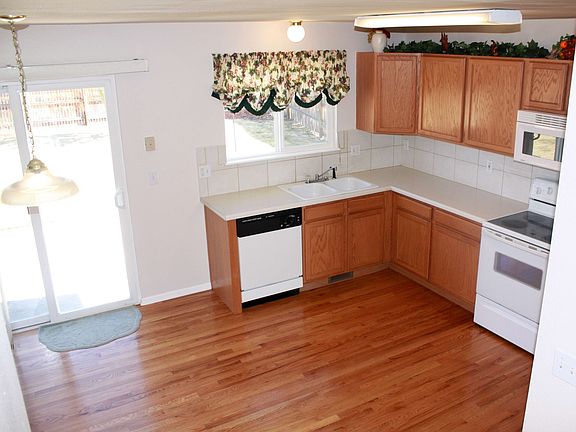 Vaulted ceilings and lots of windows make this home open and cheery. Five bedrooms, four baths, oak floors throughout the main level with a walkout to a flat, fenced back yard with storage shed and patio. Gas fireplace in family room. Four bedrooms on upper level, the basement can be used as an additional bedroom or a family room. Pikes Peak views.