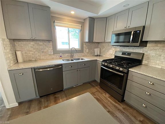 Fabulously updated ranch home! Rare find these days! This Lyndhurst home is conveniently located in a tri-school area with just a short walk to all school levels. no buses or carpools needed! Kitchen recently updated with granite countertops, stainless steel appliances-gas stove, center island and laminate flooring. throughout the house. Barn style door in living room to bedroom area. Huge L-shaped basement with laminate flooring and finished ceiling to host large gatherings. Awesome mud room with plumbing and gas line for first floor utility room. Laundry facility in basement as well. newer roof. fully fence yard. New A/C condenser installed 2020. 95+ efficiency Furnace is 3-5 years old. Newer hot water tank. Solid concrete driveway and front walk. New picture window in living room. This is a real beauty!
