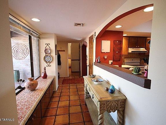 For more information on this property, contact the Listing Agent, Barbara E. Moylan at (520) 918-3718 or BMoylan@LongRealty.com. Very desirable Serenidad neighborhood built by La Quinta builders. This is a charming 3 bedroom,2 bath home. The home is 1710 square feet on just under a half acre. The split bedroom floor plan has a lovely living room with fireplace and beamed ceilings, & formal dining room. Flooring is Saltillo tile with wood floors in the bedrooms. There are lots of Mexican hand painted tile accents & very good storage spaces. This home really needs to be seen to be appreciated. Serenidad is a small community with only 55 burnt adobe homes conveniently located to shopping & restaurants & the U of A. This home would make a wonderful full time or part time residence. New roof was installed in 2011 & has a 5 year warranty. HOA covers road maintenance, trash, maintenance of common areas including the pool