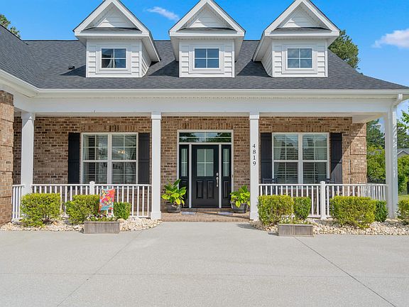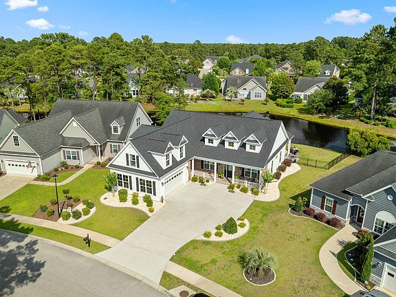 You can’t ignore the curb appeal of this one of a kind CUSTOM built better than new home in Waterford Plantation. Home is on a cul-de-sac featuring spacious brick front covered porch, carriage style side car garage, professionally landscaped yard with river rock and slate borders along with an abundance of trees and shrubs. The driveway allows for ample parking off the street and features tabby concrete driveway adding Southern charm and character to this lovely home. This immaculate open floor plan has many details to list with wood floors throughout, crown molding, wide base moldings, coffered ceiling in living room, brick fireplace, built in wall units with storage, a massive attic for more storage, 9ft. sliding glass doors leading to screened in Carolina Room with a gorgeous slate floor leading out to the covered patio with pavers, summer kitchen, fenced in backyard overlooking the lake in the backyard. The interior kitchen is a chefs dream featuring large dining area, white cabinets, inviting large center island in a warm gray/brown cabinet featuring additional storage and accommodates seating for 4, premium upgraded quartz countertops, subway tile backsplash, stainless steel gas burning stove and wall oven, pantry, designer lighting that elevate the kitchen to another level to make this kitchen a dream to entertain and enjoy with family and friends. Master Suite with tray ceiling, crown molding, slider doors to walk out and enjoy coffee on additional back patio overlooking lake, double sink vanities, water closet, large tile shower, walk in custom designed closet. Two additional 1st floor bedrooms feature wood floors, crown molding and ceiling fans. Hall bathroom features a large tub and tiled shower walls and floor. The laundry room/mud room can be accessed through a second entry door on the front porch leading to the garage. Some features include porcelain tile floor, sink with granite countertops, washer and dryer, large closet and a built-in stop and drop rack for storing and organization. From this room is the entrance door that leads upstairs to a large bonus room featuring a full size bathroom. Also upstairs you will be amazed at the EXTRA LARGE storage rooms featuring shelves allowing for personal items to be easily accessible in the home at any time. The painted oversized two car garage has epoxy painted floors, painted walls, trimmed casement windows, additional large storage closet and additional cabinets. You will appreciate the convenient location of Waterford Plantation to the beach, shopping, hospitals, dining, golf course and airport. Waterford Plantation is a beautiful community with plenty of mature trees, sidewalks, amenity center, pool, gym, playground, tennis court, pickleball, nature trail and it backs up to the Man O War and Wizard golf courses.