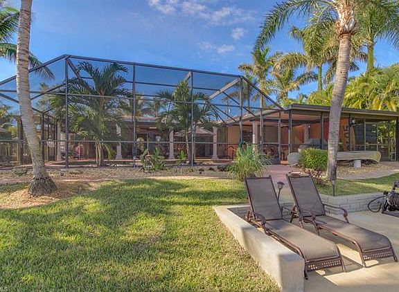 Beautiful sailboat gulf access pool home with huge covered lanai. This home is perfect for entertaining Southwest Florida style with a modern kitchen and numerous upgrades. This home has over 1100 square feet covered lanai with a Tiki bar, shower and designer pool with a fountain and jetted in-pool seating. The pool cage and covered lanai total over 1800 square feet. The renovated kitchen has ample cabinet space, plus a large built-in pantry and granite counter tops. Both bathrooms have been updated and the master bath has new granite. You will enjoy the beautiful SW Florida mature landscape with multiple majestic Royal Palms, a nice herb garden on the side of the house with a paver walkway ¾ of the way around the house. You will enjoy fresh mango, coconut, avocados and bananas. This home is located on one of the deepest canals in Cape Coral and just minutes from the gulf. The salt water pool has a new energy efficient pump with solar and electric titanium heaters. This home has a full compliment of roll down hurricane shutters with custom bracing for the garage door. You will be close to the South Cape shopping and entertainment district. Don't miss this exceptional home!