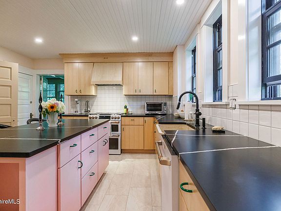Attached via breezeway/sunroom is a custom built 2 car garage and second level storage/loft. Entertain outside and enjoy an expansive 2.7 acres- fully fenced in, and bordering the well known Hilltop Orchards. Meander through birch grove pathways, and beautiful gardens. This property has so much potential and is conveniently located with access to Berkshire & Columbia County. 10 minutes to Tanglewood, 2.5 hr access to NYC & Boston metro areas, and within 30 minutes or less of all local amenities and cultural attractions.