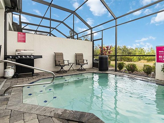 SIGNIFICANT PRICE REDUCTION!! Located in the desirable Festival Community in the Champions Gate area. This beautiful END UNIT - 5-bedroom, 5 Bathroom home is Move in Ready, Fully Furnished and zoned for Short Term Rental. This Customized Ashton Woods Model Home boasts a luxurious open concept layout and welcoming attention to detail. Upon entering you will be greeted with the light and bright living and dining room with two sliding doors looking out onto its very own private heated pool. The open plan, custom kitchen is the heart of the home with Quartz countertops, Stainless appliances, large Island with 42-inch floor to ceiling cabinetry. One of the primary bedrooms is located on the ground floor with an expansive master bathroom with dual sinks and large walk-in shower. The additional 4 bedrooms with the second master suite are ideally located on the first floor offering plenty of room for the family to enjoy quiet time. The private pool is ideal for family time, cooling off and making memories after a long day at the Parks. Located within easy access to I-4, and Disney Parks. Downtown Champions gate minutes away offers exclusive Golf amenities, Tennis courts, Restaurants and Shopping. The HOA includes Cable, High speed internet, walkable access to Community amenities, including a resort-style Pool and Splash pad, Mini-golf, Arcade, Ice cream Shop, Restaurant and Bar, Fitness Center and Playground. 3D Matterport Video link: https://my.matterport.com/show/?m=d4H7RxsaDUh&mls=1