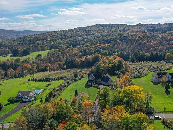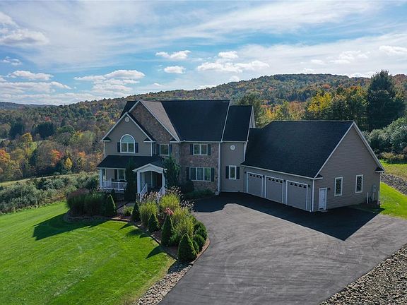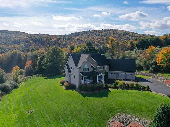 Breathtaking best describes this pristine custom built one owner home with million dollar views from every room. Situated on over 6 acres only the finest high quality finishes and amazing details adorn this home. Lamp post lighting illuminates the driveway as you are welcomed by extensive landscaping, a stamped concrete patio and beautiful covered front porch. Double doors invite you in to the 2 story foyer accented by a lead crystal chandelier and pattered porcelain floors. First floor has 9' ceilings and 8" oak baseboard throughout. Arched doorways. Brazilian cherry floors and decorative oak crown molding accent the living and dining rooms. Dining room also has dentil panel chair rail and crystal chandelier w/ matching sconces. One of a kind gorgeous custom window treatments throughout, gourmet kitchen w/ Cherry cabinets, granite counter, tile backsplash, island w/ Wolf stove & downdraft, chef-grade appliances and every possible amenity. adjacent prep kitchen for the cooking