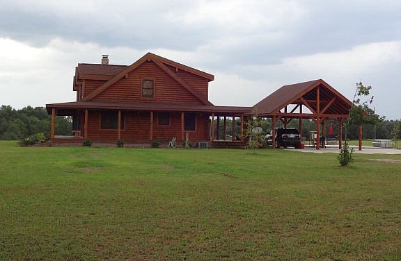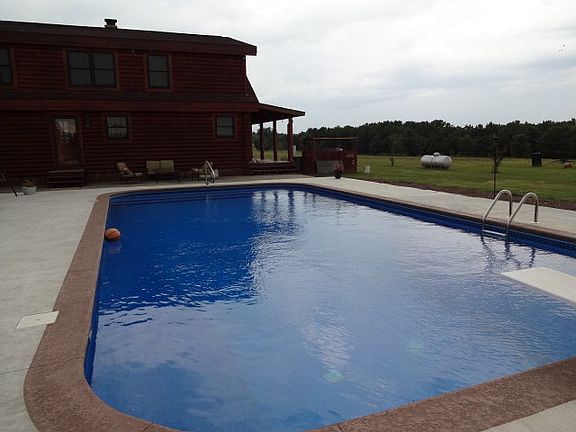 Enjoy your wrap around porch in fine country style. 4 BR, 3 BA log cabin home w/3190 sq.ft. Sitting on 36.5+/-acres. Living room with Real stone fireplace. 16 ft. ceilings. Storm shelter INSIDE the home! 40x60 barn with roll up doors also 25x60 Lean to. For those hot summer days enjoy your one year old in ground pool! One of the finest log homes in the area! A must see!