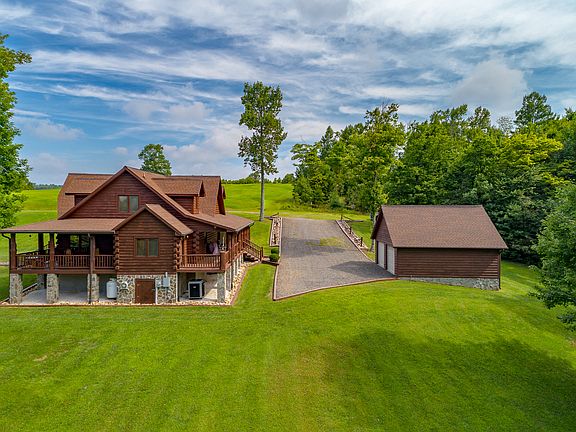Luxury log home living at its finest! This beautiful 3 bedroom 3 and a half bath log home has over 2500 square feet, and 5 open acres. 5 extremely well manicured open acres for your yard. You could spend all day looking through all of the fine details throughout this house. With the exception of an old TV, old sterio, and the owner's clothes, everything else conveys with this home! This is what you call move-in ready! Just bring the food, and start living. You even have an SUV, a Mazda Miata, a motorcycle, and 3 four wheelers that convey as well. It doesn't get any better than this, and just wait until you see that view! The heat pump is dual zoned, but with one unit for better efficiency. Everything in this home is custom made. You're the only house on this road, the privacy and serenity is unreal! This home has been immaculately maintained, so the home looks the way it did when it was first built! Conveyable property does not HAVE to convey, feel free to negotiate a price without.