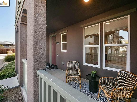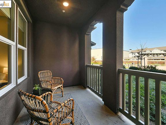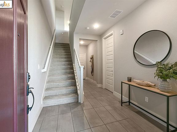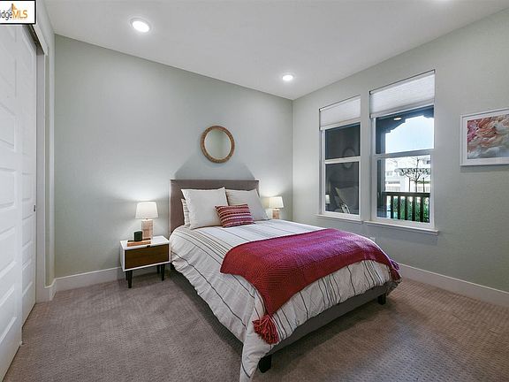 Stunning, nearly-new (built in 2017) tri-level home set at the end of a private street, with a spacious covered entry porch. Two balconies overlook a large greenscape. Enjoy views of the Oakland hills and skyline in the background, from your living room and third floor master suite. A full master suite on the first floor is ideal for visiting friends or in-laws. On the second floor, an open floor plan brings together a completely modern kitchen, with its massive island and stone countertops, and large dining and living room areas. Upstairs, two bedrooms share a Jack-and-Jill bathroom, a convenient and spacious laundry closet, and the primary master suite. Enjoy peaceful days in this desirable community. Relax as you commute by ferry to SF, or head across Alameda Estuary to some of Oakland's best dining and entertainment options: Just a block away, construction is underway on a pedestrian paseo project & includes plans for a water taxi service to carry you across to Jack London Square.