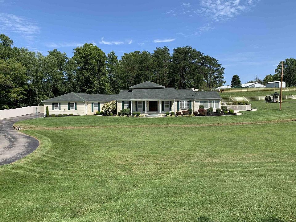 Stunning home located on 7+ acres located within 10 minutes of I64 offering 4 bedrooms, 3 full bathrooms, 4 car attached garage, and RV parking, custom kitchen, with the main bedroom on the main living floor that has direct access to the inground pool/patio. The main bedroom offers a custom walk in closet and sitting area as well. The family room, dining room offers direct access to the inground pool and the courtyard. Located on the property is an approximately 80 x 121 horse barn/building with indoor riding arena, custom horse stalls, laundry room, bathroom, tack room, and wash room for the horses. Just off the front of the barn is a outdoor training facility that has been professionally maintained and installed for training. This is truly a special property and a must see home.